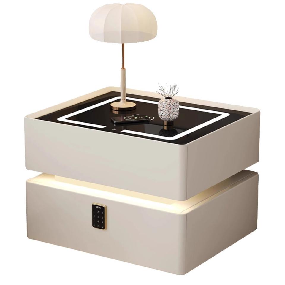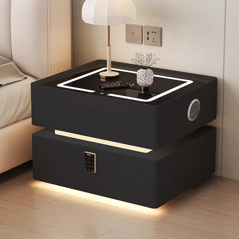 Mesa de Noche Inteligente de Diseño Moderno, Multifuncional, con Carga Inalámbrica, de Lujo, con Superficie de Madera, para Apartamentos y Hoteles