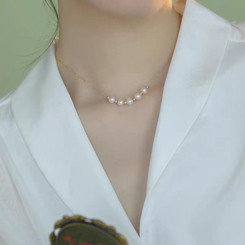 Collar de Perlas de Agua Dulce con Granos Dorados de Lujo Ligero, Extremadamente Brillante, Diseño de Clavícula de Plata S925 de Alta Gama