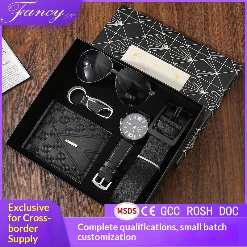 ElegirColor: Conjunto negro de 6 piezas: reloj, correa, billetera, gafas de sol, llavero, caja de regalo.