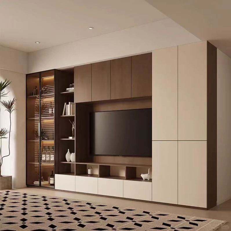 Soporte de TV de estilo moderno de lujo ligero con puertas de vidrio Espacio de almacenamiento multicapa Gabinetes de TV para sala de estar