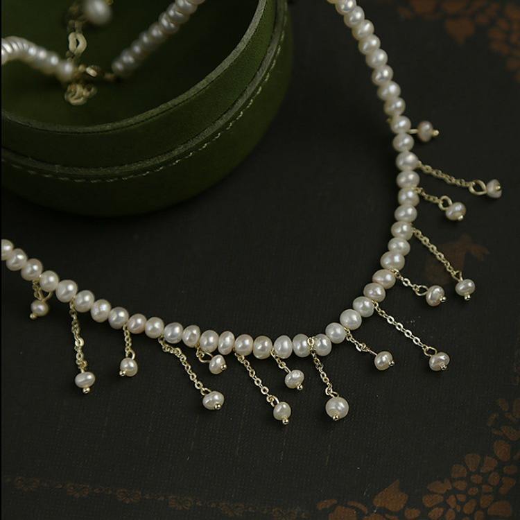 Collar de Perlas con Borla Natural de Estilo Retro y Lujo Ligero para Mujer, Cadena para Clavícula de Estilo Barroco con Colgante de Diseño Exclusivo