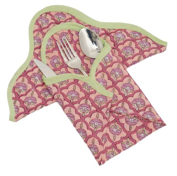 Servilletas de tela de algodón cuadradas hechas a mano de color rosa claro Trending Ridhi Piping con hermoso estampado de bloques de India PARA CENA DE cóctel