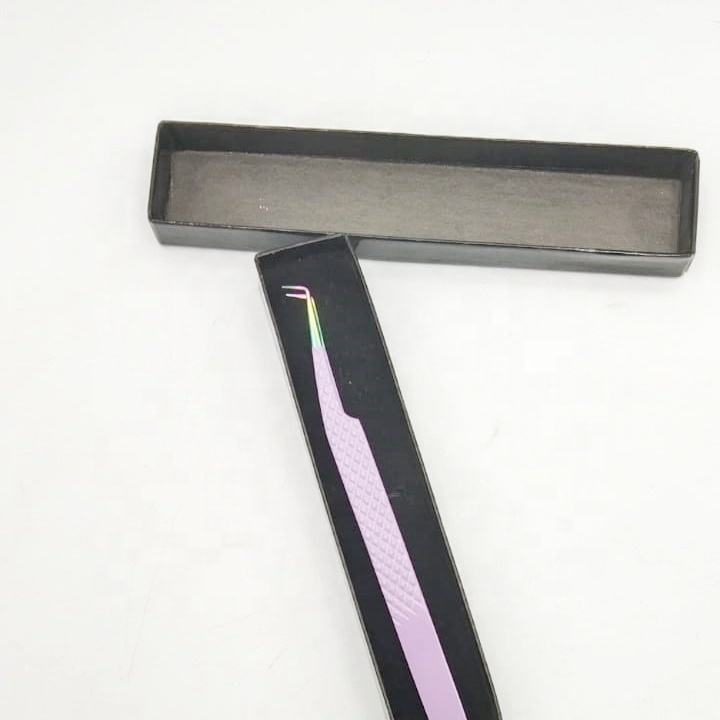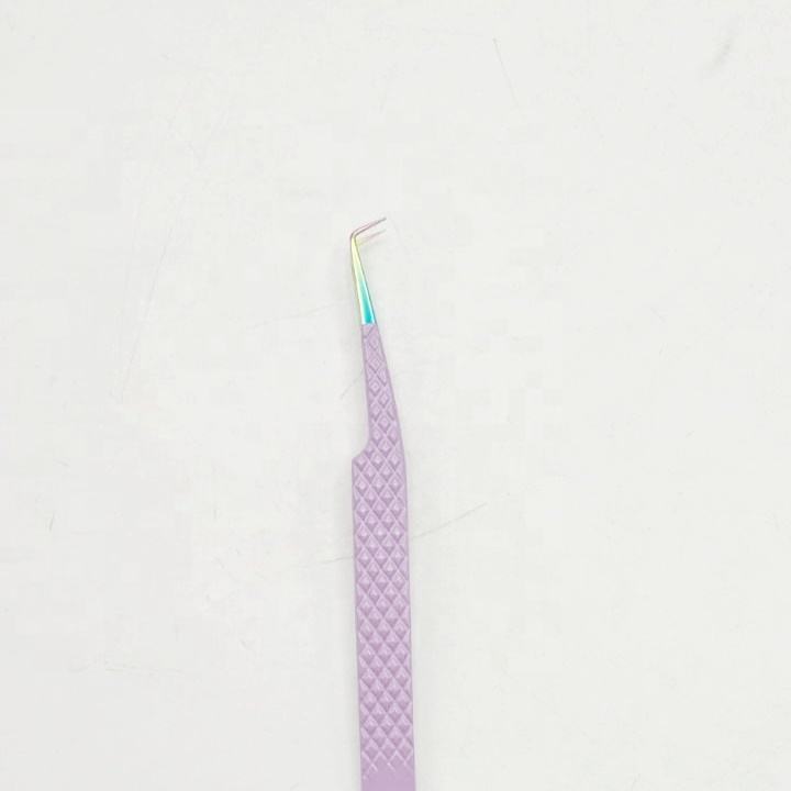 Pinzas de Acero Inoxidable Morado Claro con Punta Multiusos de 90 Grados, Logotipo Personalizado, Recubrimiento en Polvo, para Lifting de Pestañas, Antibacterianas, de Alta Calidad