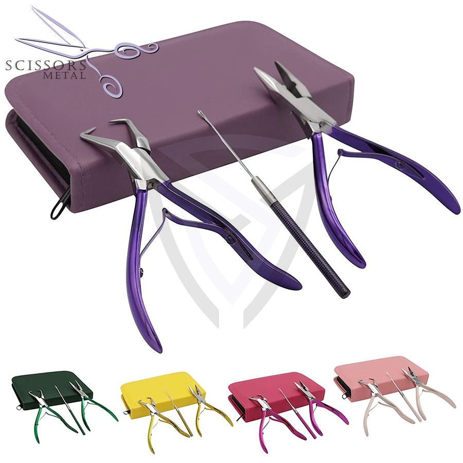 Juego de herramientas de extensión de cabello púrpura claro con alicates de microeslabón, clips, tijeras, bucle y cinta en Alicates para extensión de cabello