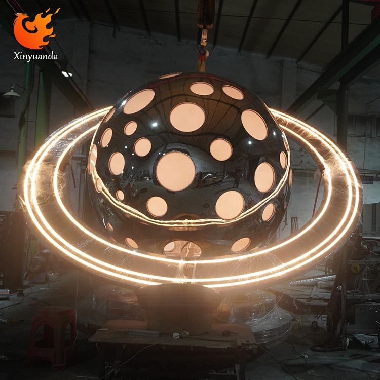 Escultura Luminosa de Acero Inoxidable con Forma de Planeta, Decoración de Estilo Tecnológico para Centros Comerciales, Instalación Artística de Moda para Plazas