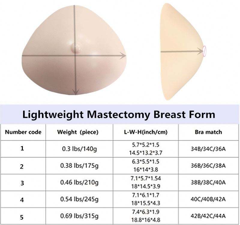 Prótesis de silicona ligera Forma de mama Forma de triángulo Prótesis de silicona de mama para cirugía posterior