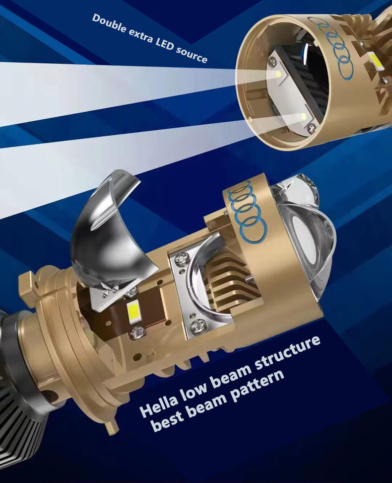 Lente de Proyector LED Mini H4 Lighting Focus, 6500LM, 75W, 6000K, Plug and Play, con 2 Fuentes de Luz LED Adicionales para BMW Honda