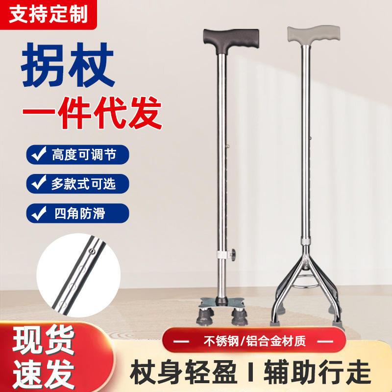 Bastón Ligero y Ajustable con Base Antideslizante de Cuatro Puntas para Personas Mayores y Asistencia para la Movilidad