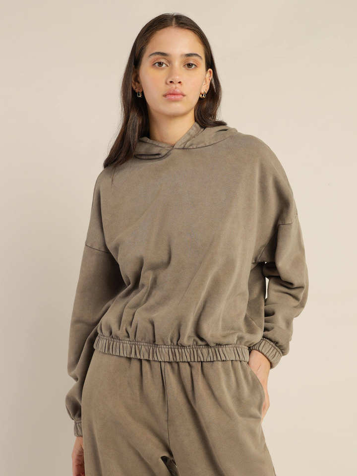 Ligero mejor venta en línea mujeres ácido lavado sudaderas Streetwear logotipo personalizado manga larga Sudadera con capucha para las mujeres