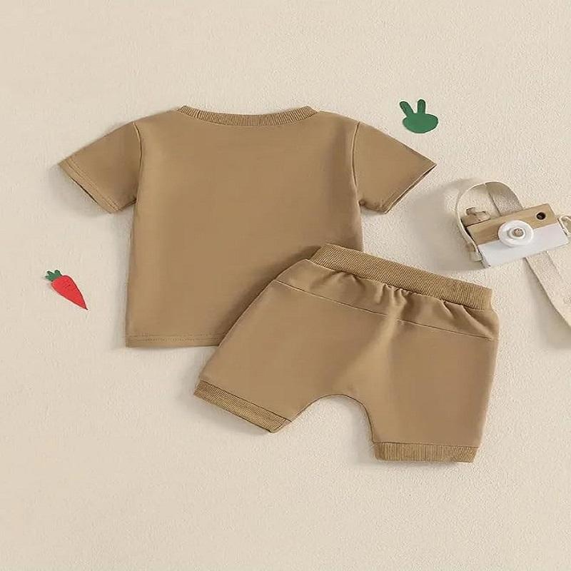 Conjuntos de ropa clásica ligera para niños pequeños Camiseta y pantalones cortos de color personalizado con diseño bordado