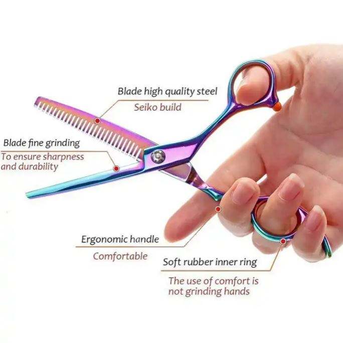 Tijeras ligeras de estilista de salón de diseño personalizado, hoja de acero inoxidable con revestimiento de titanio múltiple para corte de cabello, adelgazamiento
