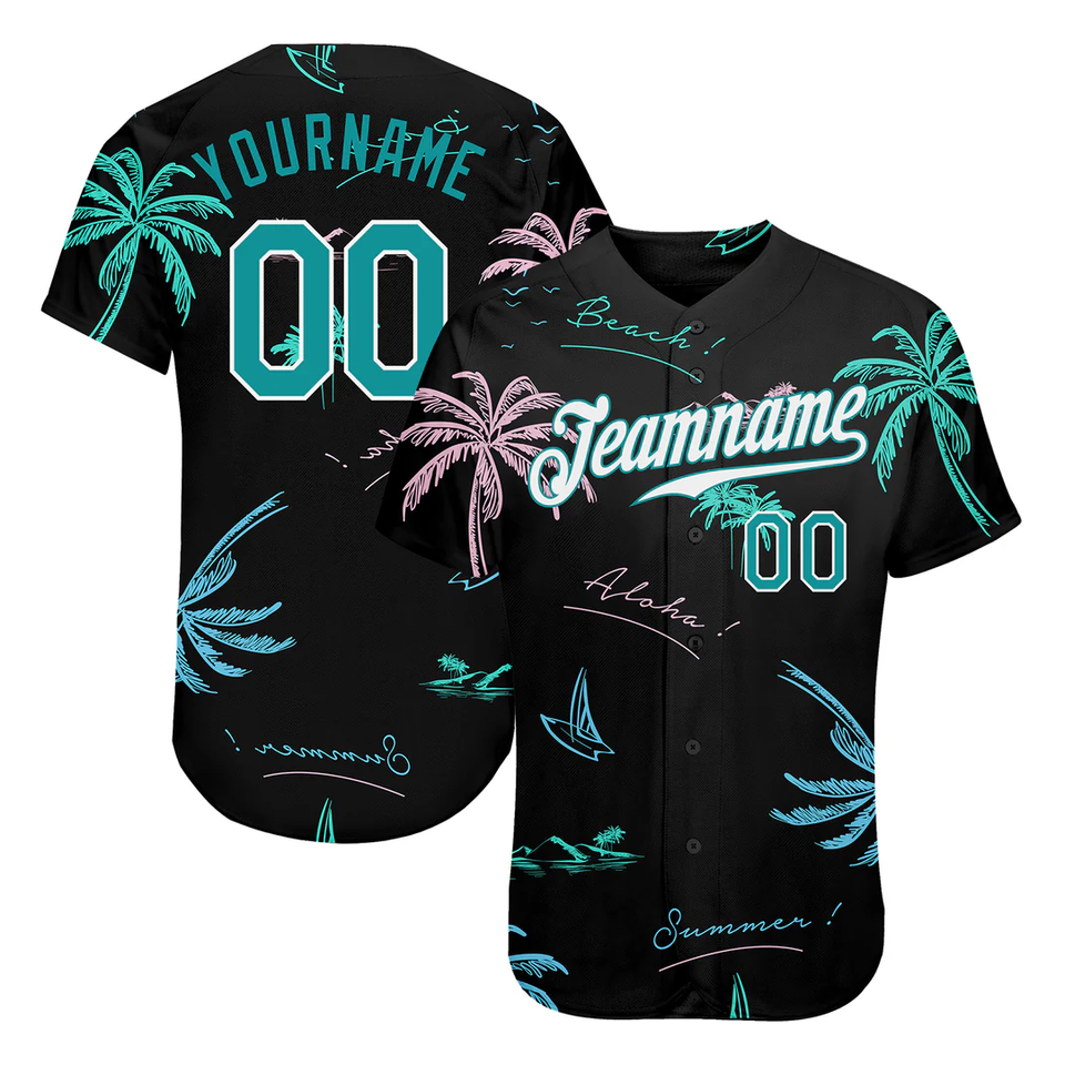 Camiseta de Béisbol Ligera con Logotipo Personalizado, Sublimación de Poliéster, Estampado de Palmeras y Flamencos