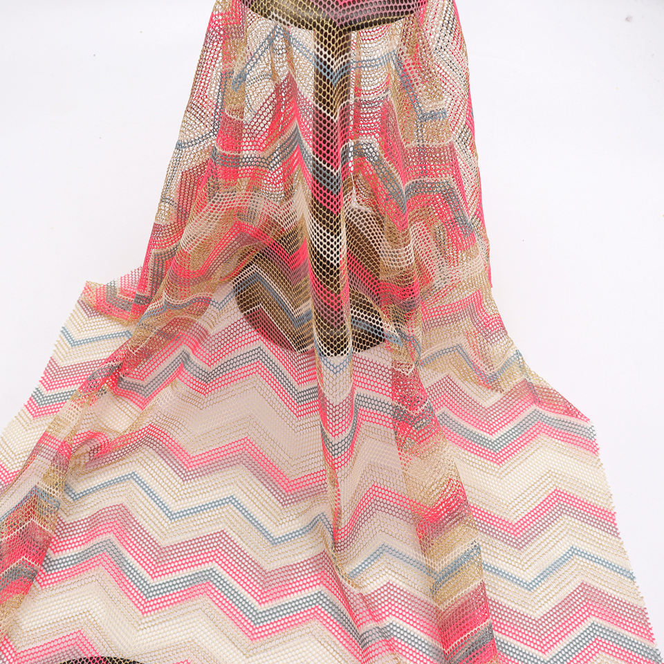 Tela de encaje de malla de tejido de diamante multicolor hilo de oro metálico de poliéster ecológico ligero vestidos de niña elásticos