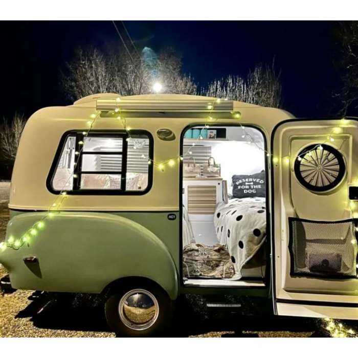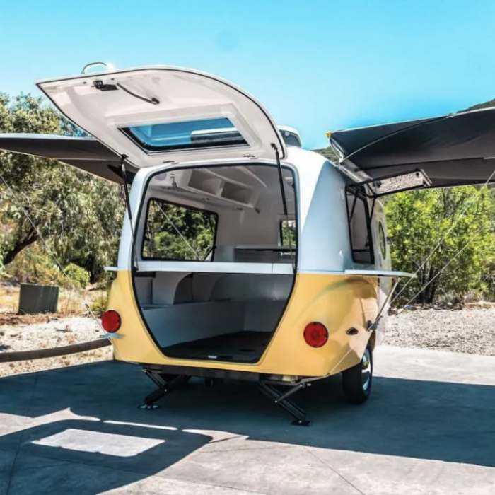 Mini caravana ligera de chapa galvanizada, casa rodante compacta con cocina y espacio para dormir, unidad de camping remolcable.