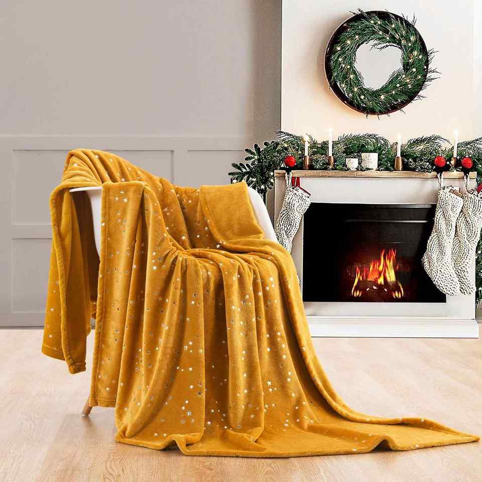 Manta de lana de franela con patrón de cielo estrellado, ligera, con estampado en caliente, Idea de regalo, suave, acogedora, cálida, personalizada, manta de jengibre