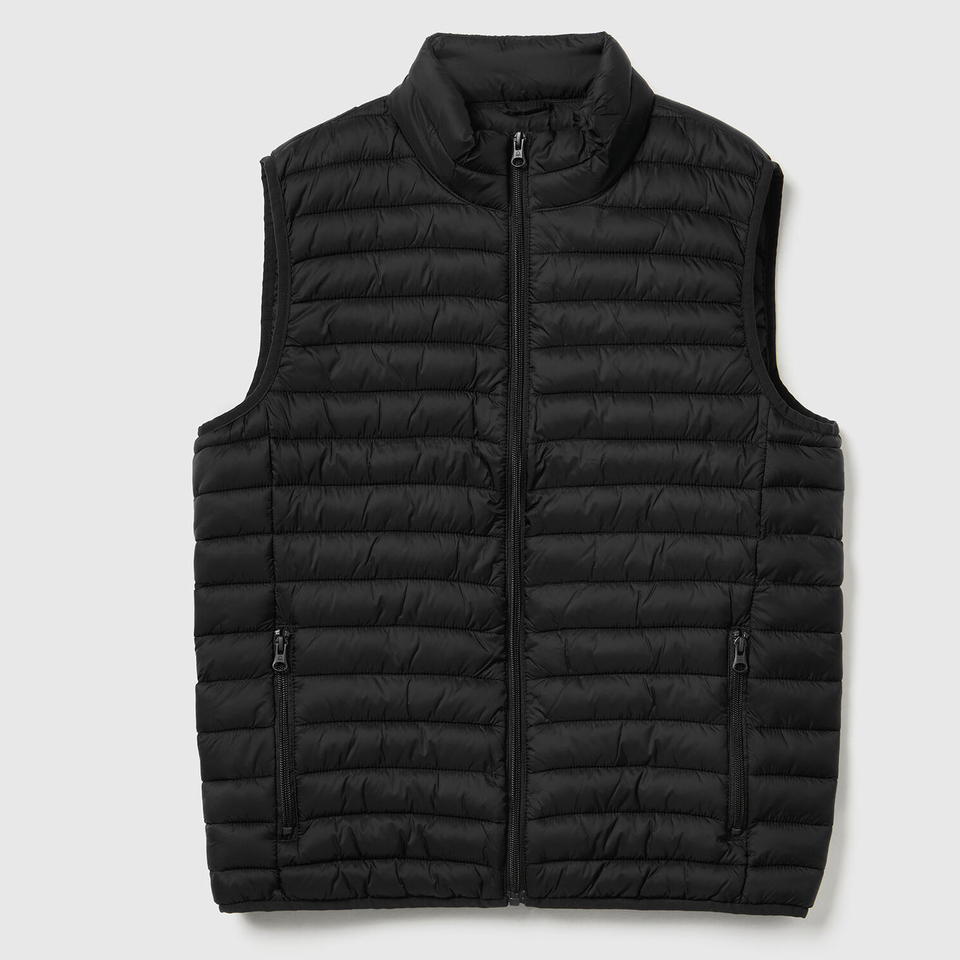 Chaqueta acolchada de mezclilla de invierno para hombre ligera con capucha y cuello levantado empacable sin mangas de talla grande