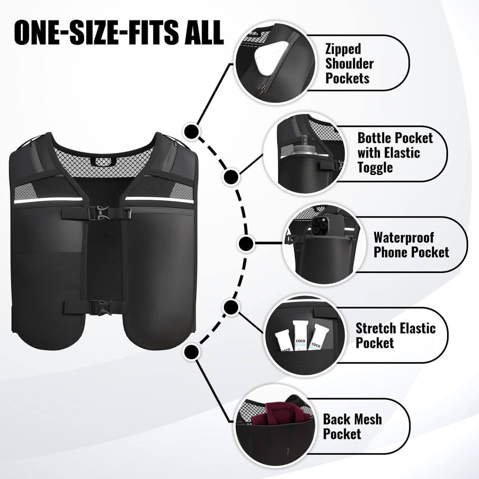 Chaleco Deportivo Ligero de Neopreno y Poliéster, Resistente al Agua, Reflectante, con Cierre Frontal, Transpirable, para Deportes al Aire Libre, con Espacio para Teléfono