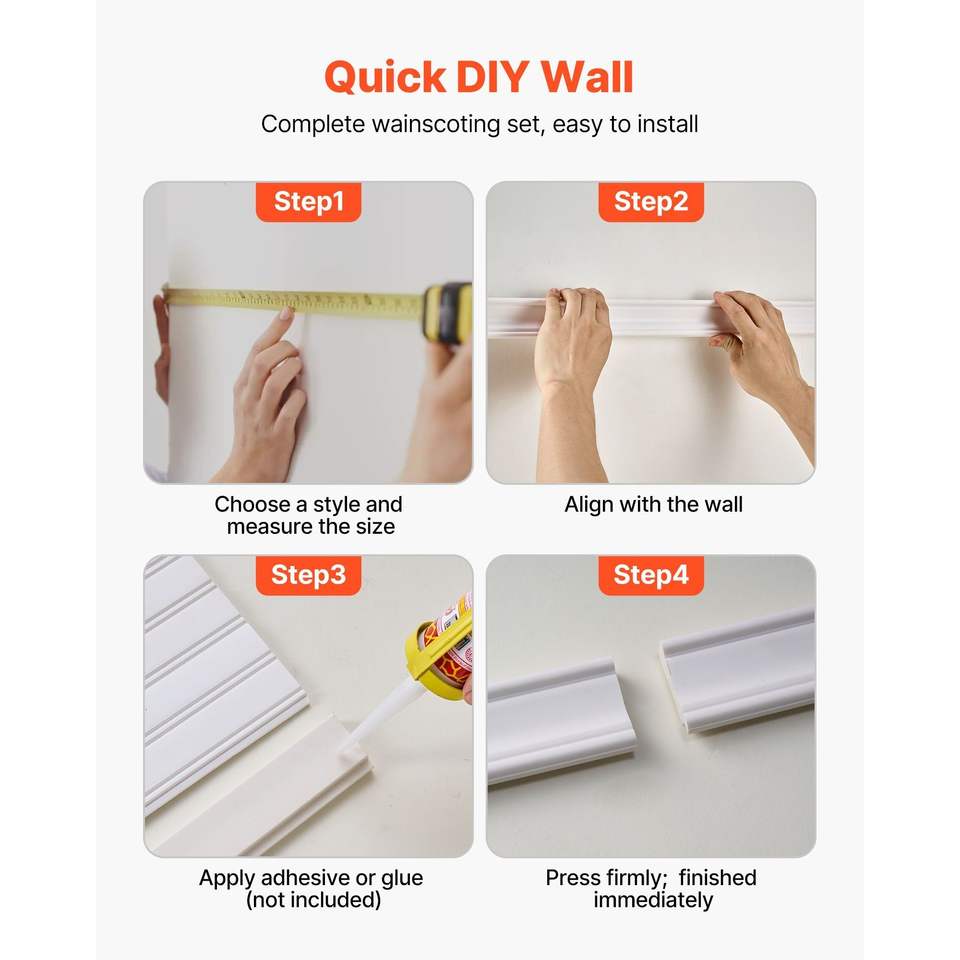 Kit de molduras de pared de poliestireno pintable y ligero, paneles de revestimiento de pared anchos y estrechos de fácil instalación, paneles de revestimiento convenientes