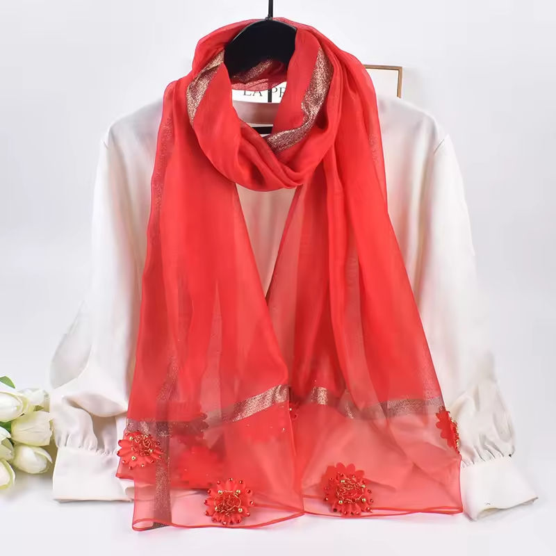Chal ligero de poliéster con adornos, tela transparente y transpirable para todas las estaciones y looks en capas