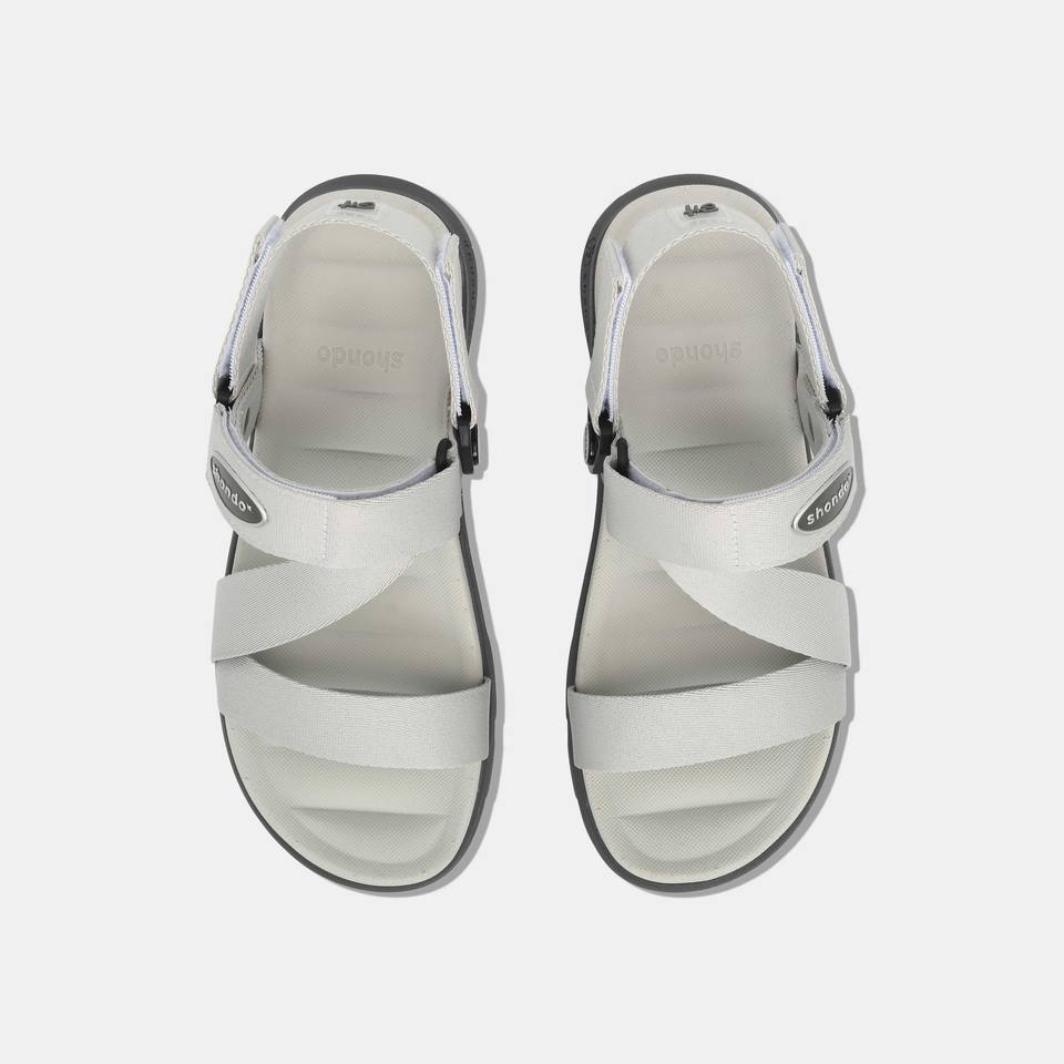 Sandalias Casuales SHONDO con Punta Abierta, Color Gris Musgo, Cierre de Velcro de Secado Rápido y Correa de Talón Giratoria