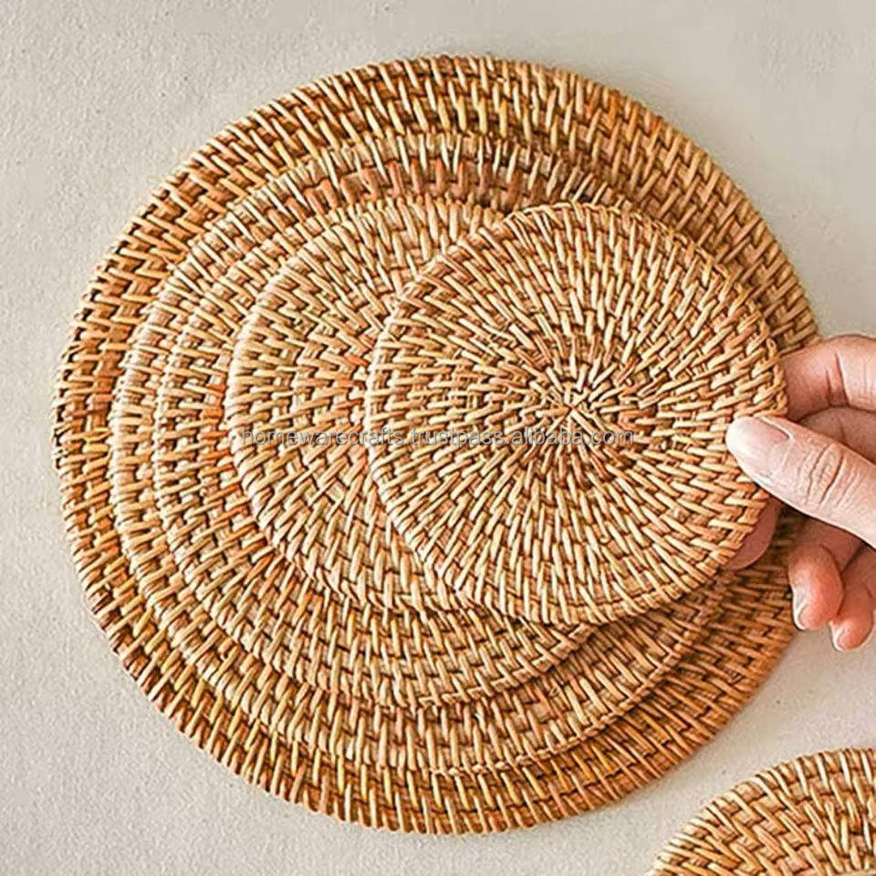 Posavasos de Ratán Ligeros, Hechos a Mano, Naturales, para Mesas de Comedor, Exportador al por Mayor, Calidad Vietnam
