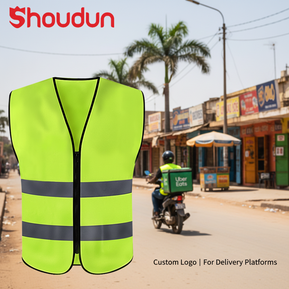 Chaleco de Seguridad Reflectante Ligero para Repartidores de Comida, Chaleco de Malla de Alta Visibilidad con Tiras Reflectantes, Chaleco Personalizado con Logotipo para Repartidores