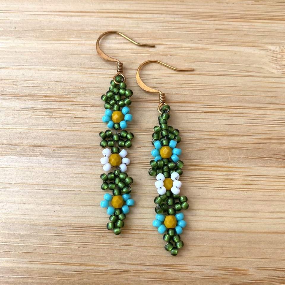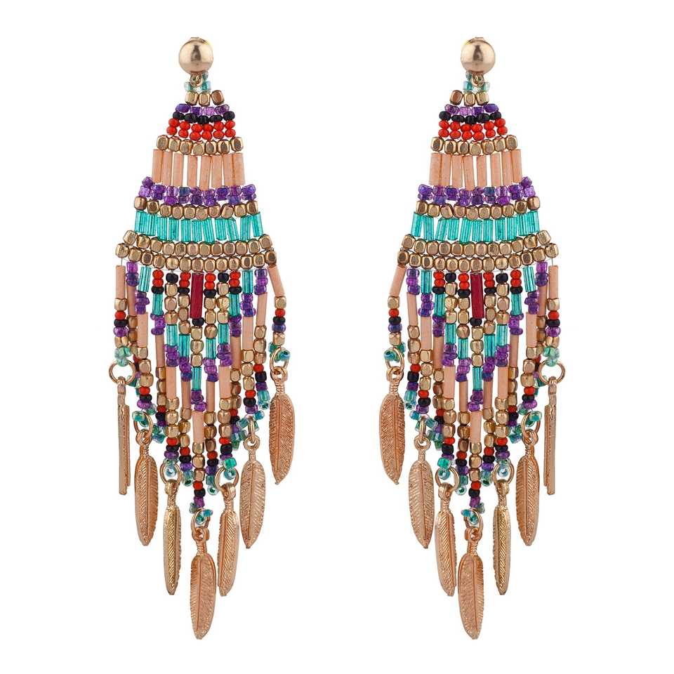 Pendientes de tuerca bordados con cuentas de semillas ligeras para damas Pendientes Elegancia de temporada Pendientes de abalorios de semillas