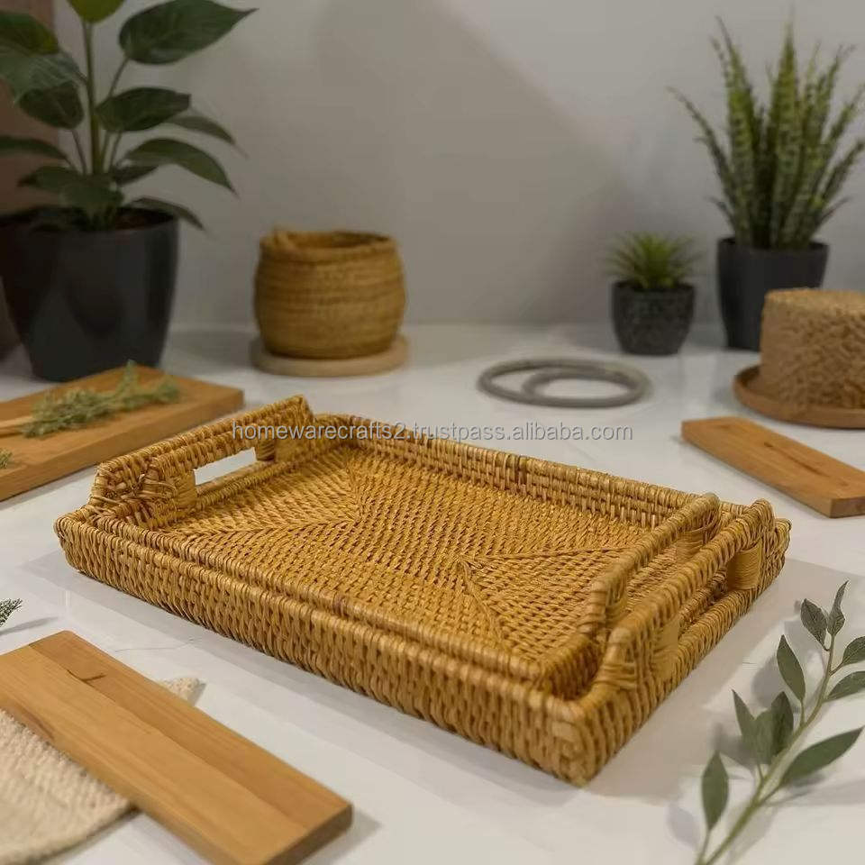 Bandejas de Ratán para Servir Alimentos, Ligeras, Hechas a Mano, Tejidas con Ratán Natural, Ecológicas, Fabricante al por Mayor de Vietnam, Tamaños Personalizados
