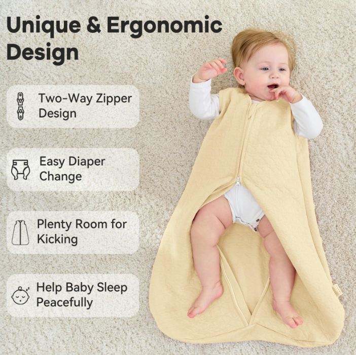 Saco de Dormir Ligero y Suave con Cremallera de 2 Vías, 0-6 Meses, 0.5 Tog, Manta Vestible para Bebé
