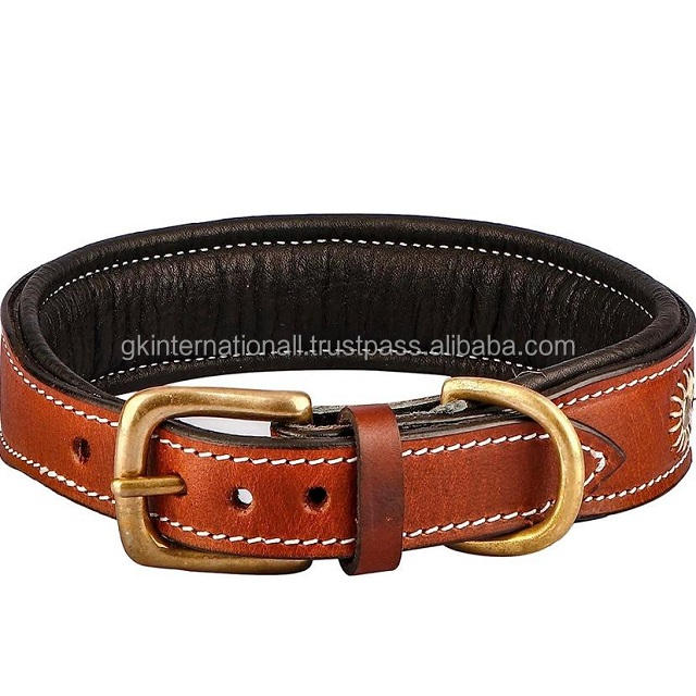 Collar de perro de cuero de diseño cosido elegante acolchado suave ligero en todos los tamaños y colores personalizados con herrajes de latón macizo