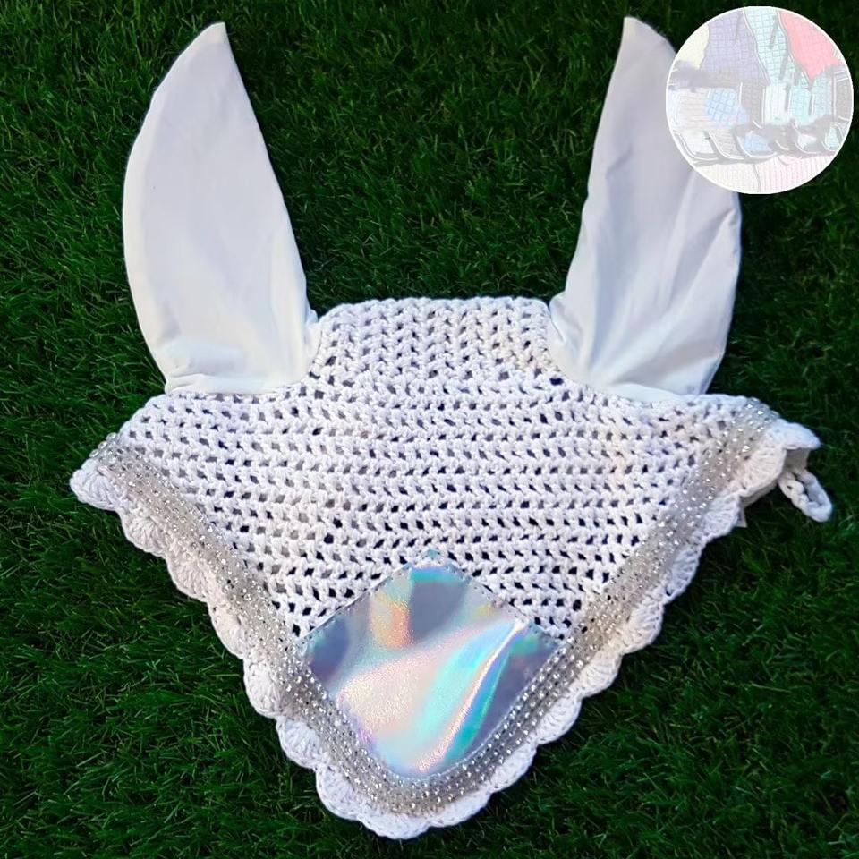 Gorro de oreja de caballo de ganchillo con estilo ligero hecho a mano velo de mosca diseño cómodo para amantes de la equitación ecuestre