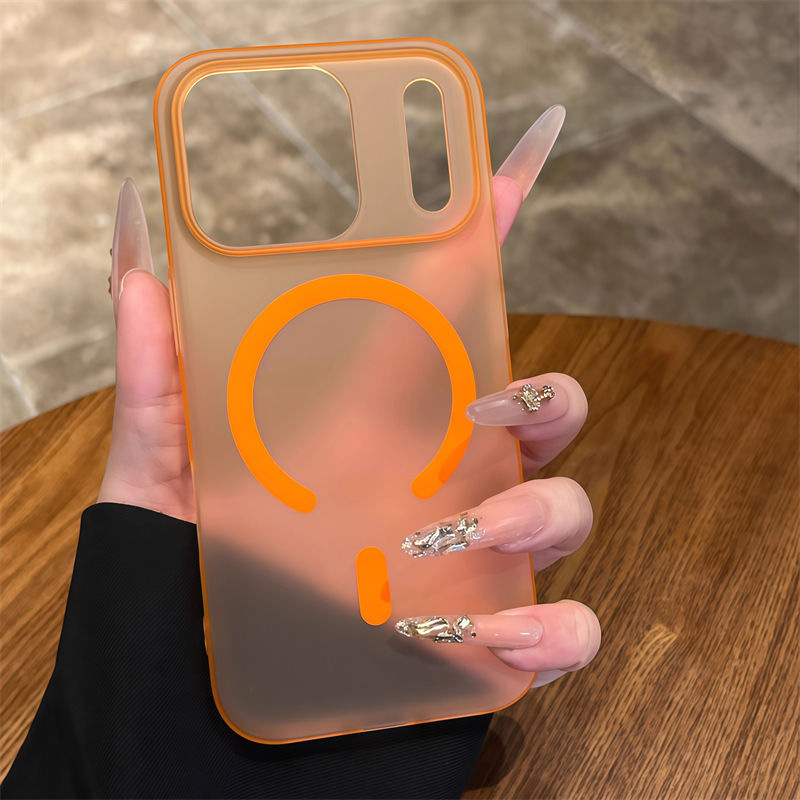 Funda Magnética Ultraligera y Ultrafina para iPhone 17 Pro Max 16 15 14 con Protección de Orificios Finos, Funda Transparente Naranja para iPhone 17 Pro