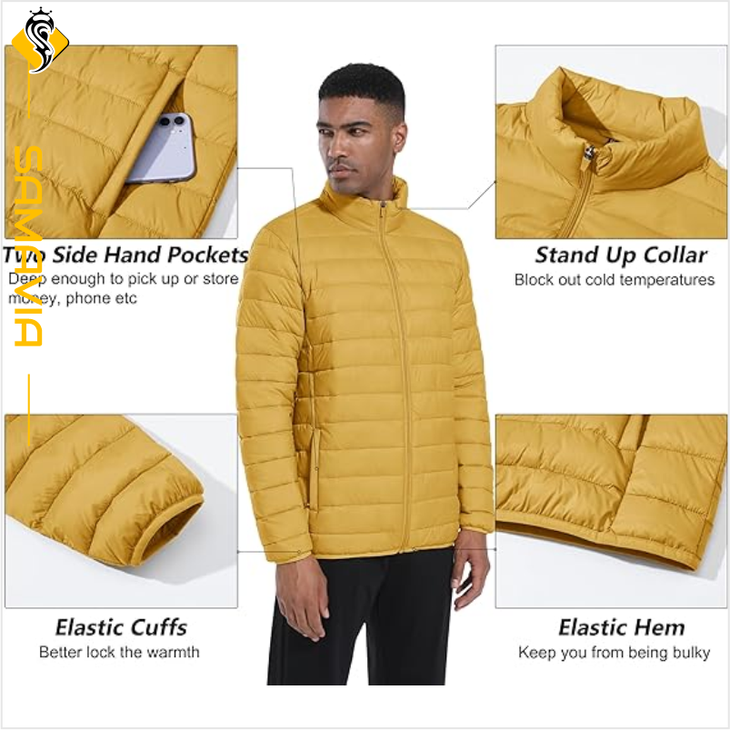 Chaqueta acolchada ligera y cálida para hombre, ropa de abrigo acolchada con cremallera transpirable para exteriores, lista para enviar