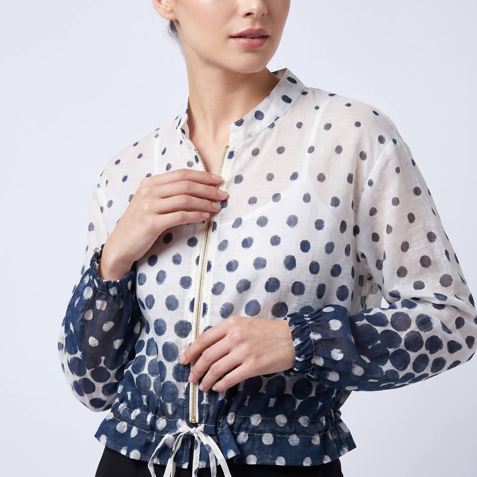 Chaqueta ligera con cremallera, puños elásticos y estampado de lunares, talla única (tallas 36–42)