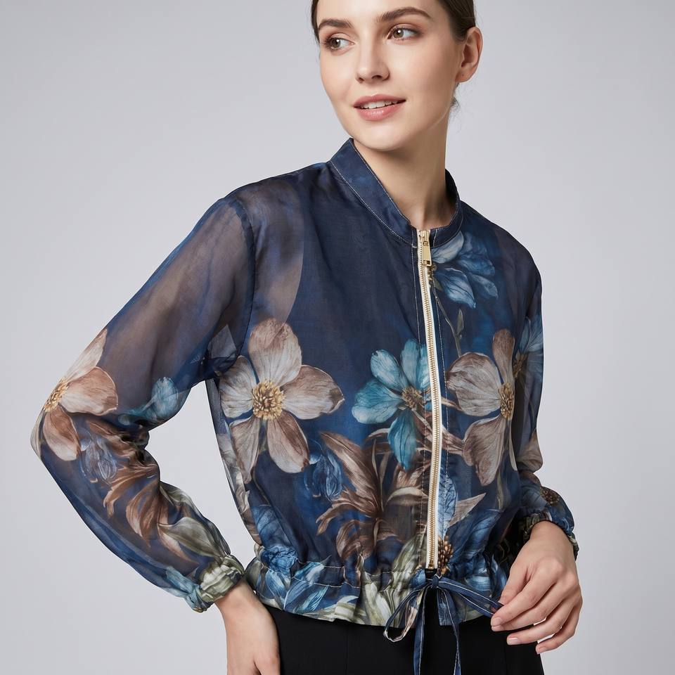 Chaqueta Ligera y Transpirable de Chifón con Cierre, Puños Elásticos y Estampado Floral, Talla Única