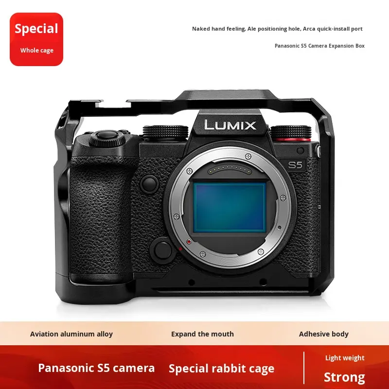 Jaula Ligera para Cámara Lumix S5, Jaula Completa de Aleación de Aluminio de Liberación Rápida, Protección Anticaídas para Fotografía
