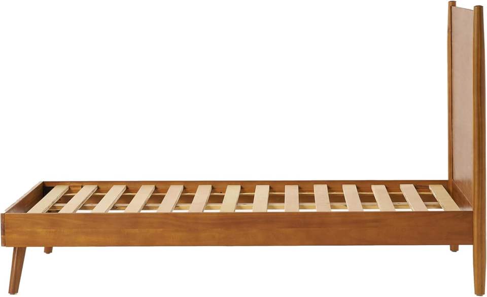 Marco de cama LikeHome Archer Queen con acabado ligero de madera maciza de acacia, diseño bohemio moderno y cabecero de estilo tradicional