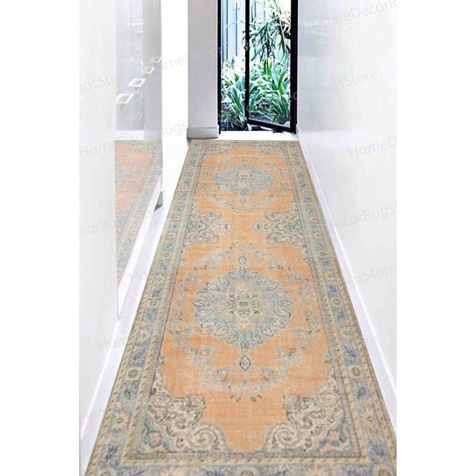 Alfombra Estampada Lila - Tonos Suaves, Detalles Naranjas, Diseño Turco, Alfombra Suave No Tejida