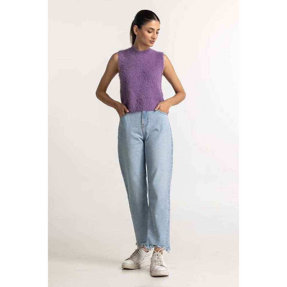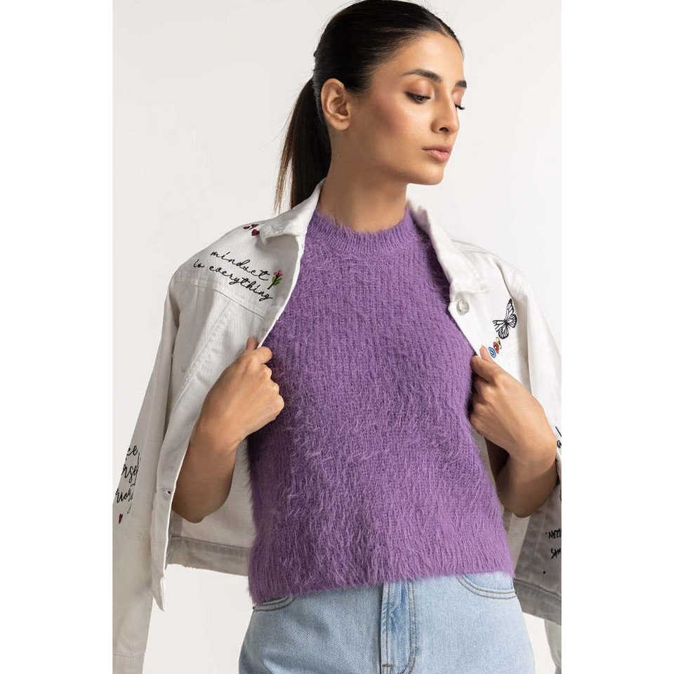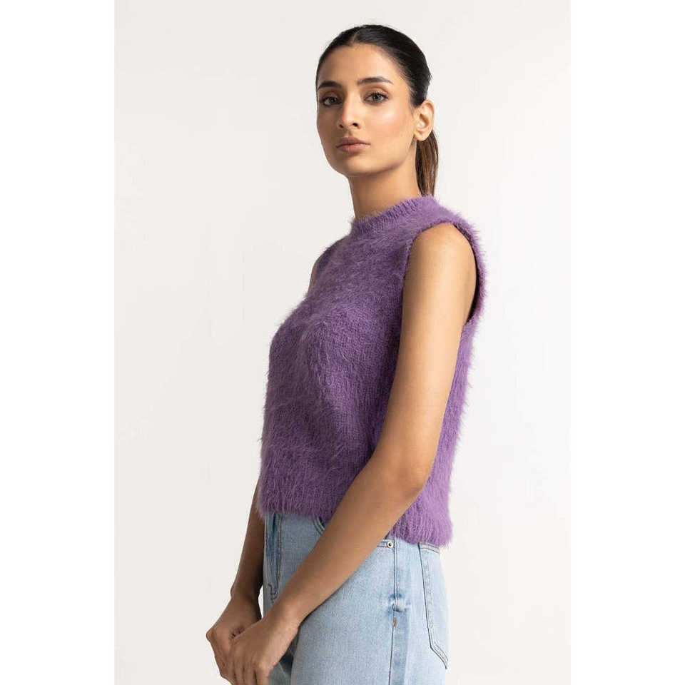 Suéter Básico de Lana Lila con Decoración de Piel para Usar como Prenda Exterior-WM-SWT-WS23-064