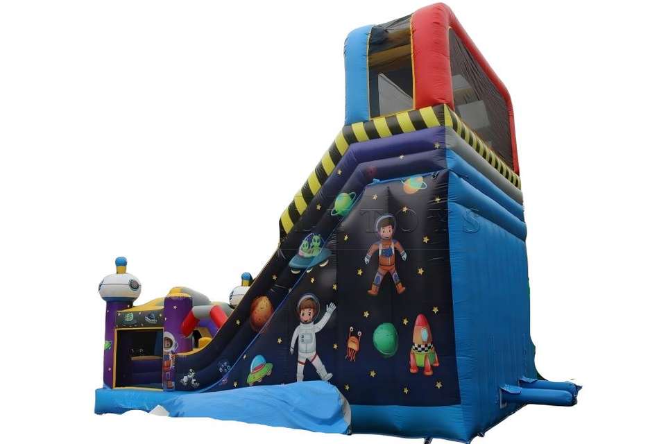 LilyToys - Pista de Obstáculos Inflable Grande Personalizada con Diseño de Astronauta Espacial, con Tobogán, para Fiestas al Aire Libre y Parques de Diversiones Infantiles