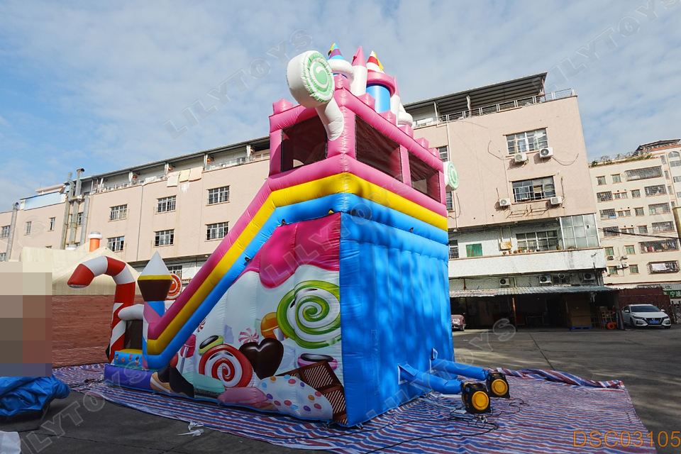 Tobogán Inflable Lilytoys con Diseño de Dulces, Juegos Inflables Comerciales para Niños, Alquiler para Fiestas de Cumpleaños