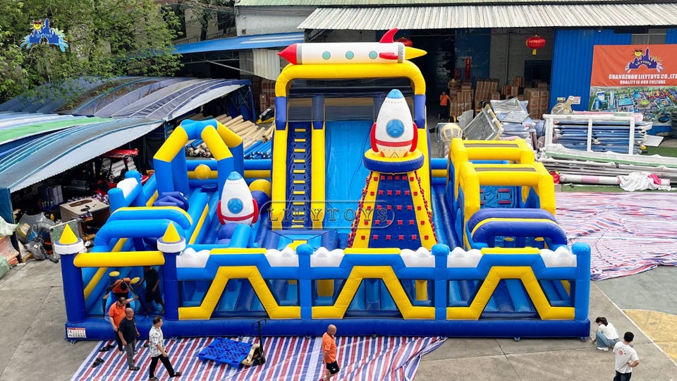 Lilytoys - Castillo Inflable Profesional con Tobogán, Diseño de Cohete Espacial, Casa de Brinco de PVC, para Parques de Diversiones