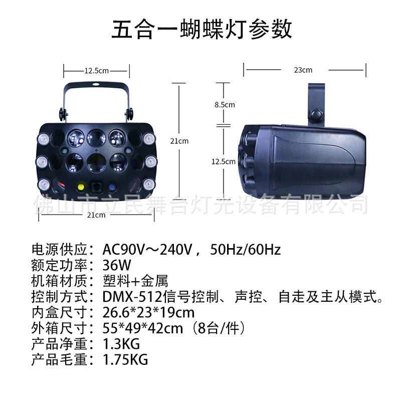 Lámpara de Mariposa 5 en 1 Limin, Luces Láser DMX 512, Iluminación de Escenario, Fiesta, KTV, Discoteca