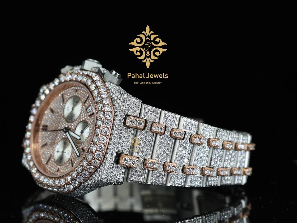 Reloj de Diamantes Moissanita con Diseño Bicolor