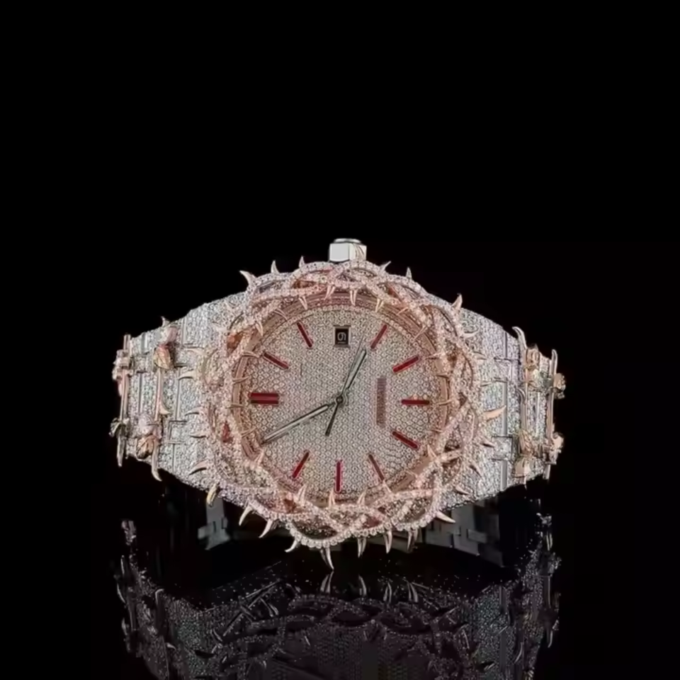 Reloj de edición limitada Moissanite Diamond Throne para hombres y mujeres moda de lujo con movimiento de cuarzo de banda de acero inoxidable