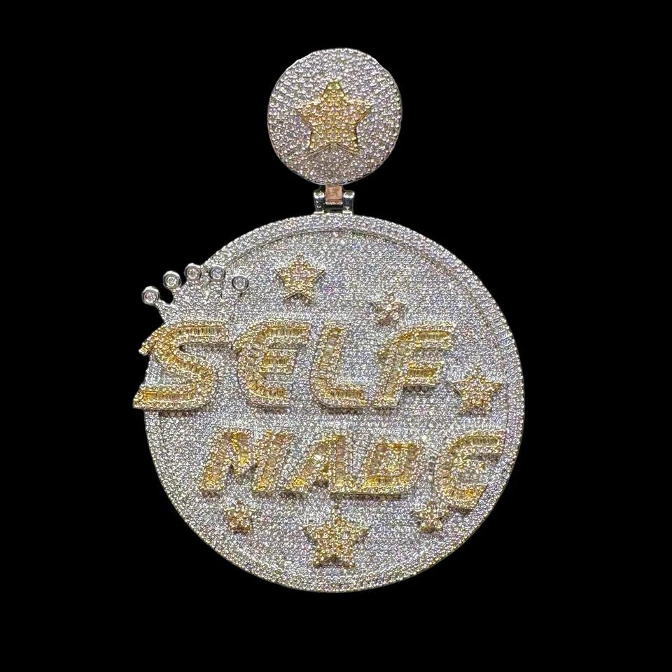 Collar con Colgante de Letra Redonda con Diamantes, Chapado en Rodio, Hecho a Mano, Edición Limitada, para Hombres, Ideal para Fiestas