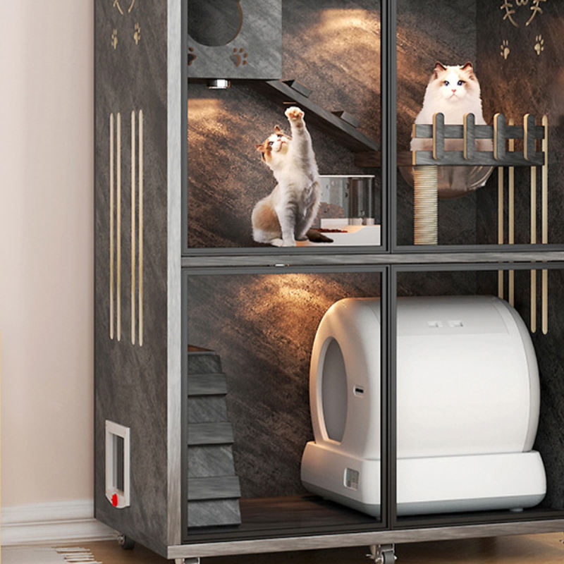 Oferta por tiempo limitado Casa de interior inteligente para gatos Casa de árbol de gato de lujo de madera Casas de cigarrillos para mascotas