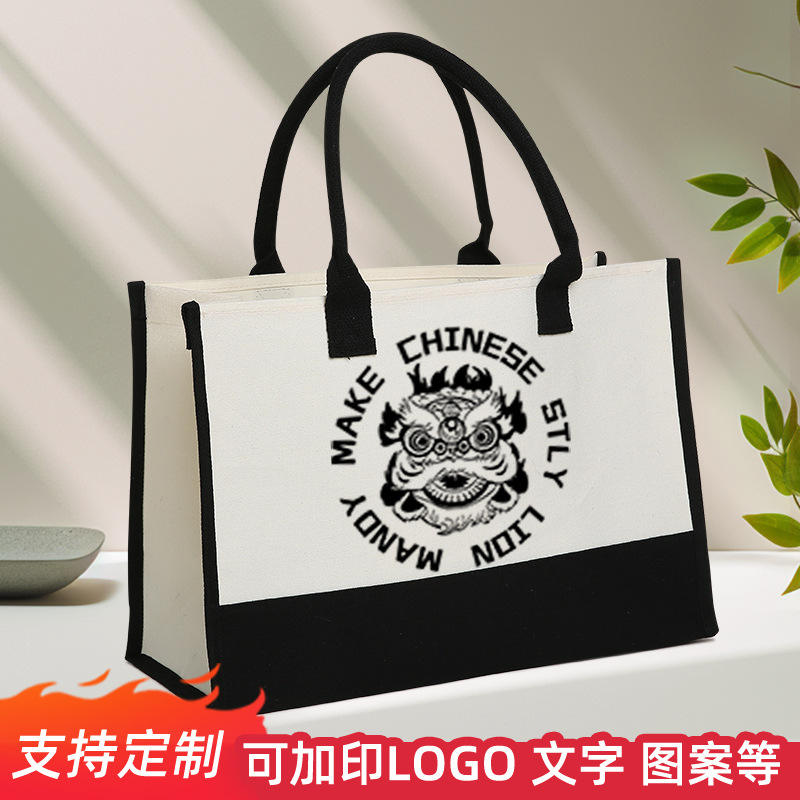 Bolsa de Lona para Compras Lin Yi, Gran Capacidad, Blanca y Amarilla, Ecológica, con Impresión de Logotipo