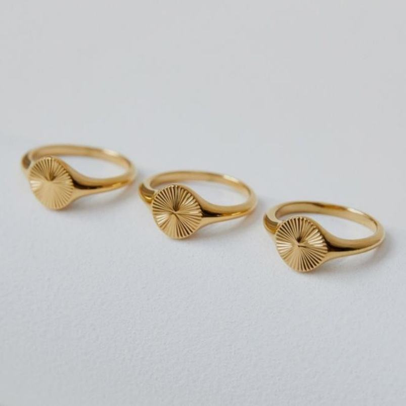 Anillo de Dedo Lincy Personalizado, Simple, de Acero Inoxidable, Chapado en Oro de 18K, con Patrón de Placa Redonda, Acero Inoxidable, Alto Pulido, Anillo IP Sunshine