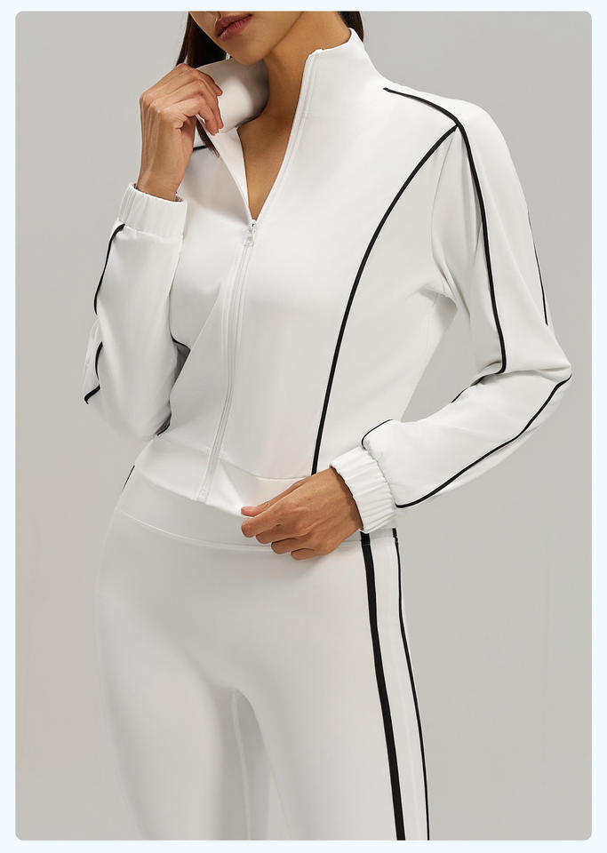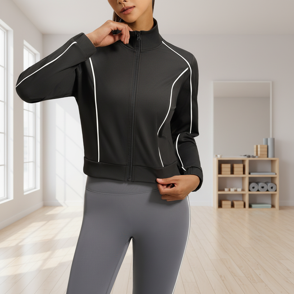 Chaqueta Cárdigan Holgada, Estilo Informal, para Primavera y Otoño, con Contraste de Color, Alta Elasticidad, Transpirable, Deportiva, para Mujer